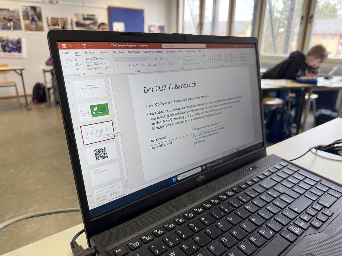 Nach der fulminanten Auftaktsitzung der Klassenenergiemanager (KEM) fand am 25.03. das zweite Treffen statt. Lara, Maria (beide 8a) und Susanne (8d) leiteten die Veranstaltung als angehende Umweltmentorinnen und standen jederzeit für Fragen zur Verfügung. Schwerpunkt diesmal war das Thema CO2-Fußabdruck, zu dem nach einer Online-Recherche mit iPads auch kreative und sehenswerte Plakate erstellt wurden, die in den jeweiligen Klassenzimmern aufgehängt werden.